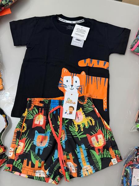 Nosso conjunto é perfeito para os dias de diversão e movimento! O short é feito em microfibra com elastano, garantindo leveza, conforto e secagem rápida — ideal para brincar, correr e até molhar sem preocupação. Possui cordão de amarração sem ajuste e bolsos laterais além de uma modelagem moderna e confortável.